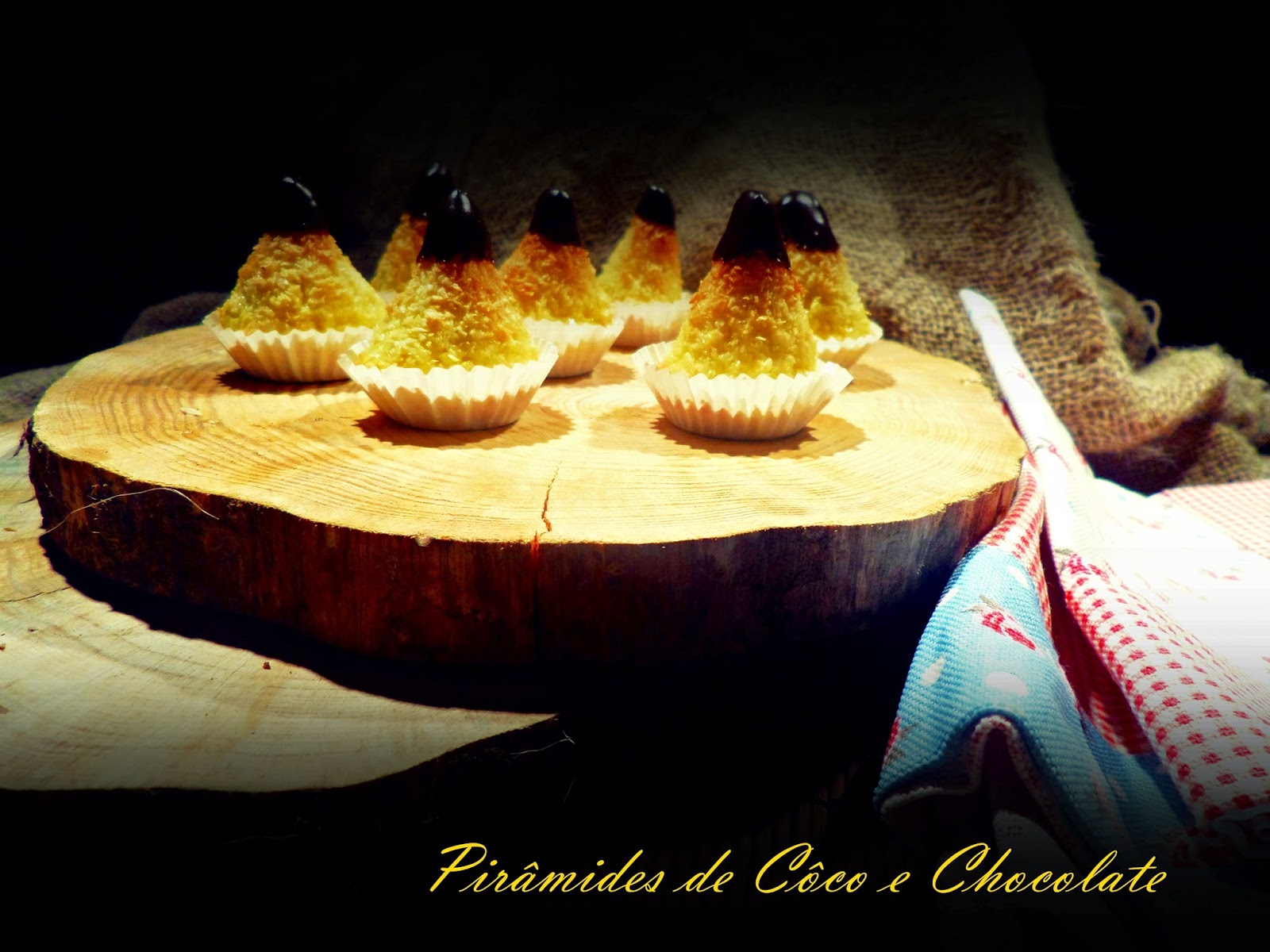 6. Entretanto, derreta o chocolate negro em banho-maria. Depois das pirâmides estarem frias mergulhe o topo das mesmas no chocolate derretido, deixe escorrer o excesso e coloque-as num tabuleiro até o chocolate endurecer.